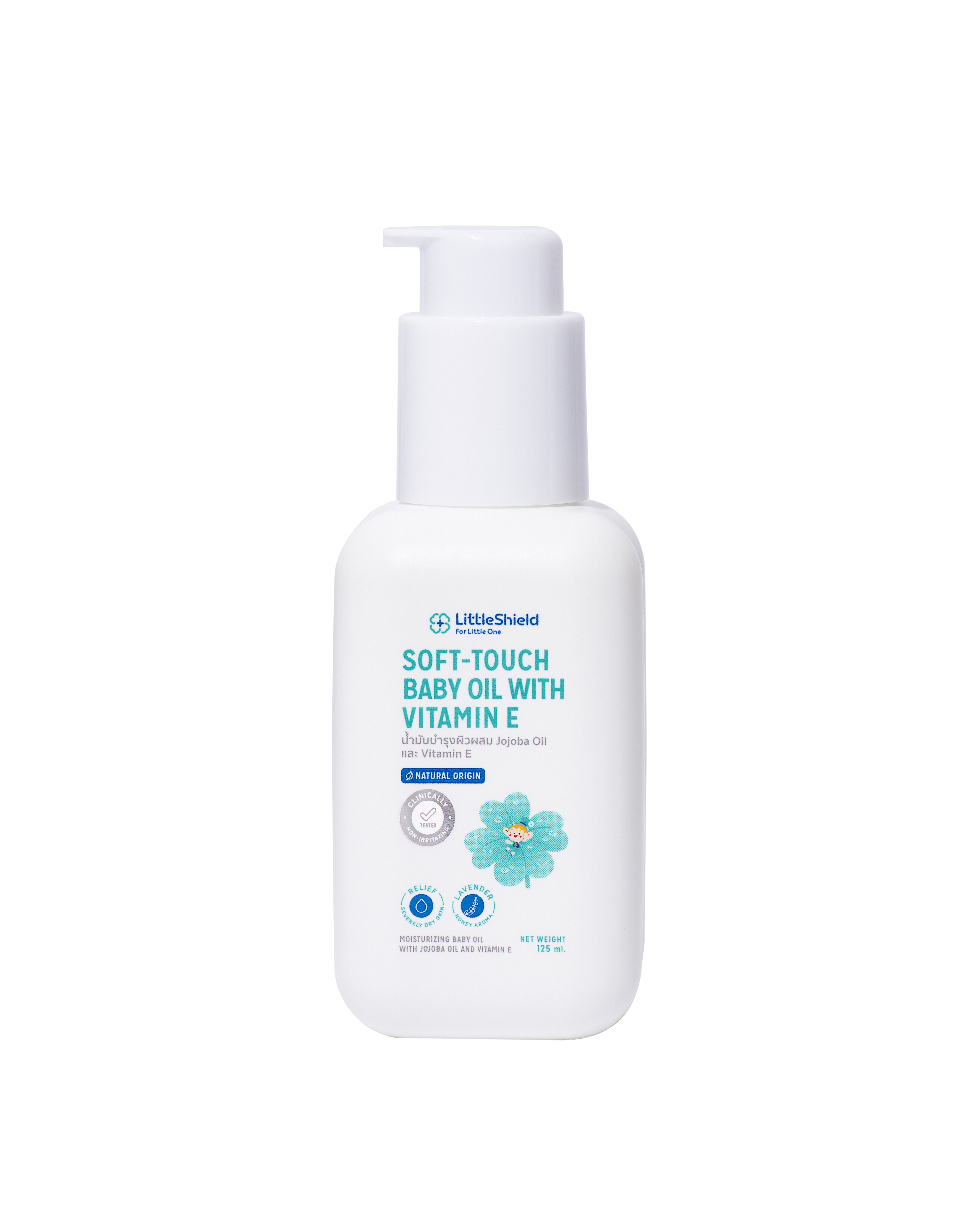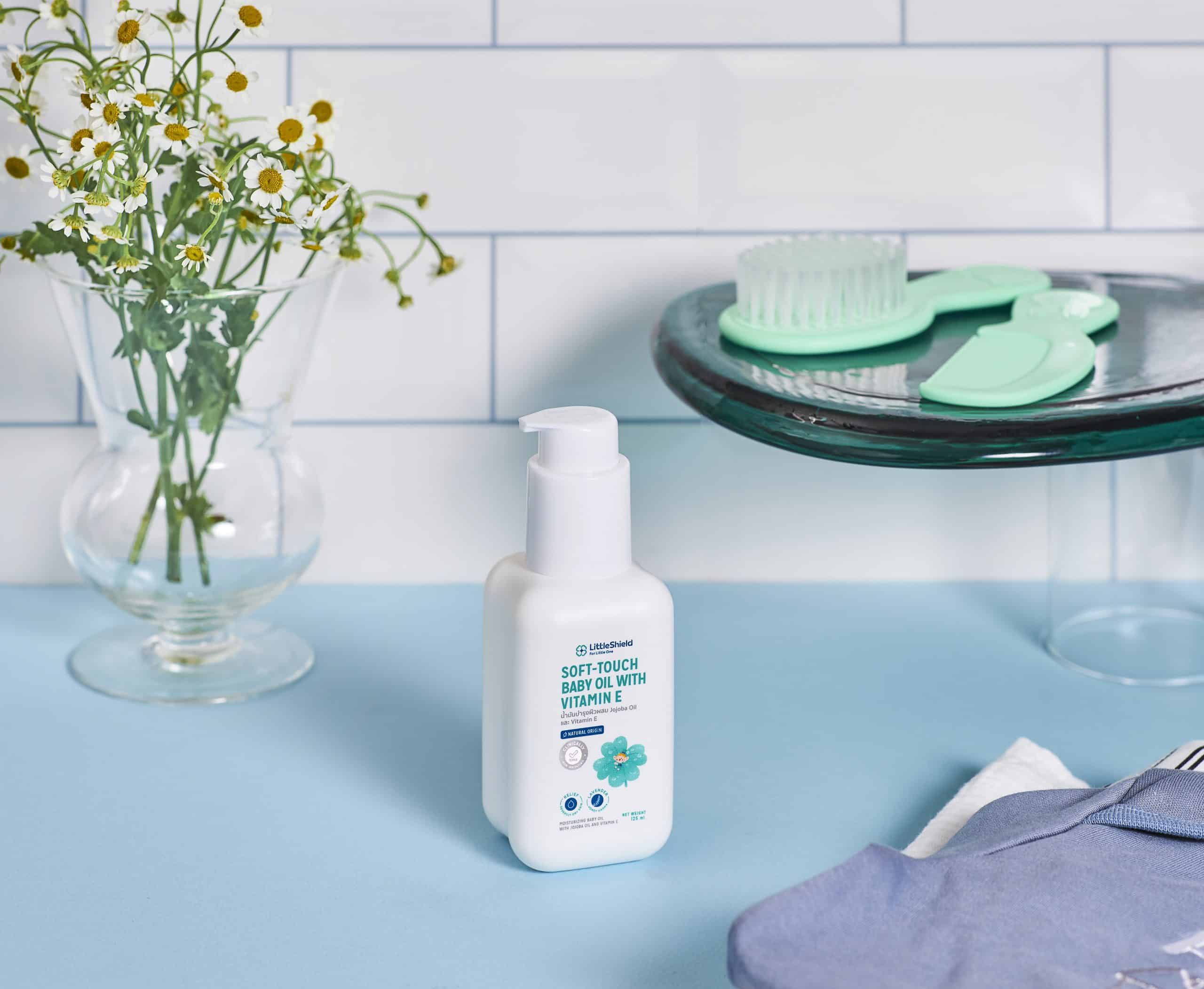 การทำความสะอาดผิวมากเกินไป อาจทำให้ผิวสูญเสียน้ำจนผิวแห้งได้ Little Shield Soft-Touch Baby Oil ผสานสารสกัดพิเศษ 4 ชนิด ทั้ง Coconut Oil, Aloe Vera, Olive Oil และ Jojoba Oil มีคุณสมบัติซึมไวไม่เหนอะหนะ ช่วยปกป้องผิวบอบบางจากความแห้งกร้าน ปราศจากสีสังเคราะห์และสารกันเสีย